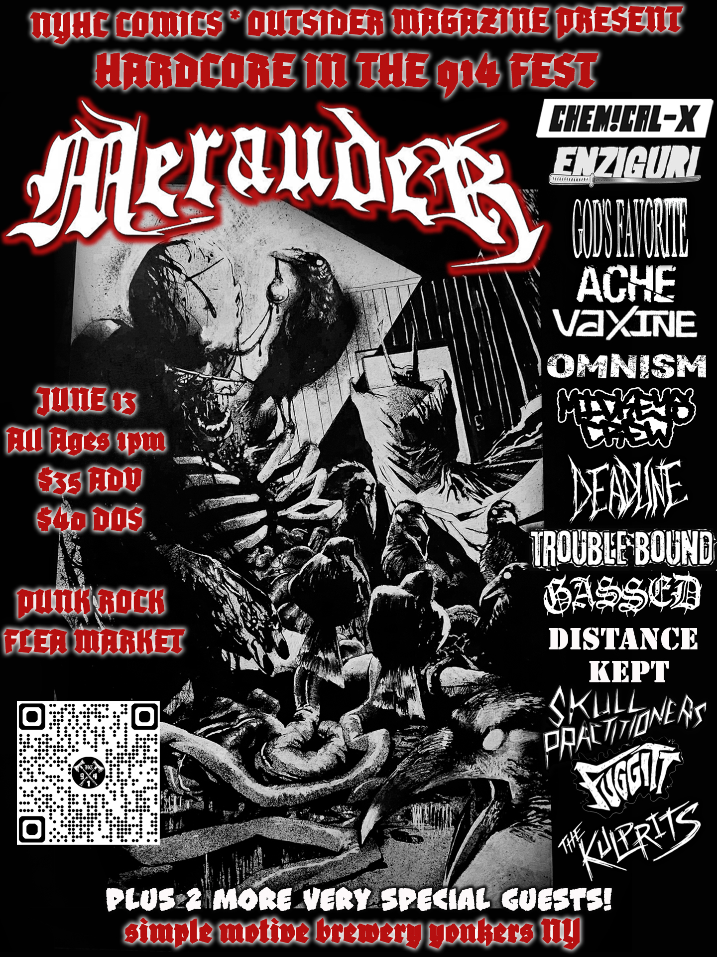 A full-scale punk and hardcore festival is coming to Westchester County on June 13th, 2026! Brought to you by the people behind NYHC Comics and Outsider Magazine, this all-day concert experience will offer a wide scope of bands from the biggest names in the game to local support. 15 bands, a punk rock flea market, food and drink bringing our community together. Follow us on Instagram and come check out what we do by attending our local shows leading up to the big Fest in June!