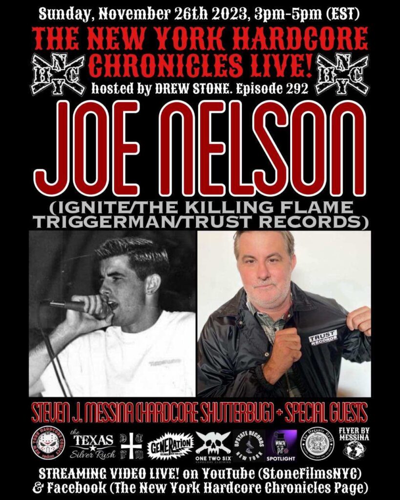 The New York Hardcore Chronicles Page & New York Hard Core Comics, Alongside Organic Grill , DTFM Vinyl Distro , ONE TWO SIX Hardcore clothing , Generation Records , Upstate Records , & The Texas Silver Rush Proudly Present, The New York Hardcore Chronicles LIVE Show! Hosted By Drew Stone With Today’s Guest Joe Nelson Of Ignite , @The Killing Flame, Triggerman & Truth Records ! Regular Show Segments; “Picture Of The Day” With Steven “Hardcore Shutterbug” Messina, “The Women Of The Pit Spotlight” Featuring Bands From Around The World! Streaming LIVE On Facebook & YouTube At “STONEFILMSNYC”! Tune In For A Great Time With Some Of The Pioneers Of NYHC!