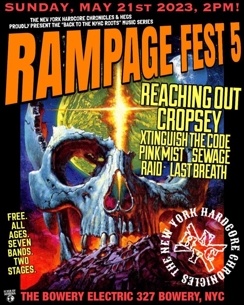 The New York Hardcore Chronicles Page Proudly Presents “The Back To The NYHC ROOTS” Music Series “RAMPAGE FEST V” An All Ages FREE Show! Two Stages, Seven Bands Sunday Matinee On The Bowery, Come Out For Music, Art, Culture & A Great Day! Always Support The Scene! Thank You
