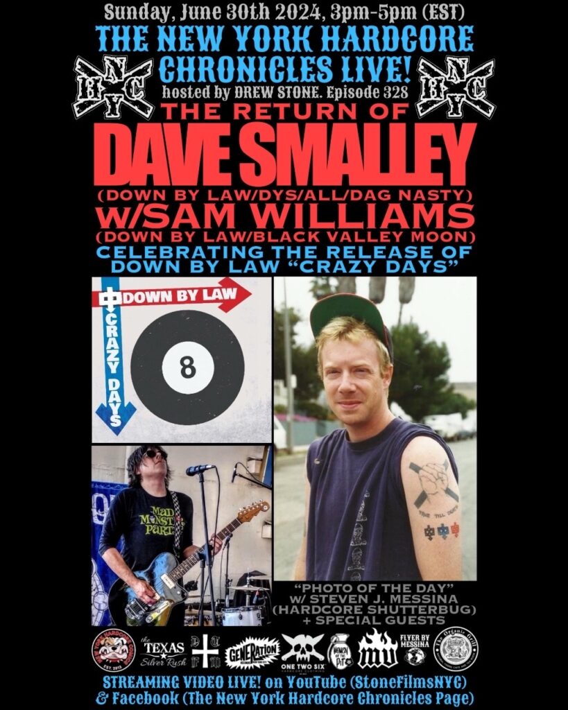 The New York Hardcore Chronicles & New York Hard Core Comics, Alongside Organic Grill, DTFM Vinyl, One Two Six Clothing , Generation Records, Madd Vintage & The Texas Silver Rush Proudly Present, The New York Hardcore Chronicles LIVE Show! Hosted By Drew Stone With The Return Of Dave Smalley Dave Smalley Of Down By Law Band, DYS Boston Official, All & Dag Nasty, Along With Sam Williams Of Down By Law & Black Valley Moon. Celebrating The Release Of: Down By Law “Crazy Days”! Regular Show Segments; “Picture Of The Day” With Steven “Hardcore Shutterbug” Messina & “The Women Of The Pit Spotlight” Featuring Bands From Around The World! Streaming LIVE On Facebook & YouTube At “STONEFILMSNYC”! Tune In For A Great Time With Some Of The Pioneers Of NYHC!