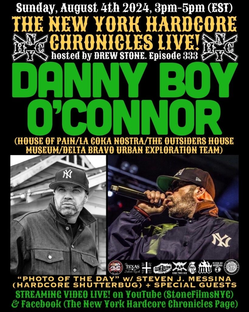 The New York Hardcore Chronicles & New York Hard Core Comics, Alongside Organic Grill, DTFM Vinyl, One Two Six Clothing, Generation Records, & The Texas Silver Rush Proudly Present, The New York Hardcore Chronicles LIVE Show! Hosted By Drew Stone With Today’s With Guest Danny Boy O’Connor @OfficialDannyBoyOConnor Of House of Pain, La Coka Nostra @LaCokaNostraOfficial, The Outsiders House Museum @TheOutsidersHouse & Delta Bravo Urban Exploration Team @DeltaBravoUrbExTeam! Regular Show Segments; “Picture Of The Day” With Steven “Hardcore Shutterbug” Messina & “The Women Of The Pit Spotlight” Featuring Bands From Around The World! Streaming LIVE On Facebook & YouTube At “STONEFILMSNYC”! Tune In For A Great Time With Some Of The Pioneers Of NYHC!