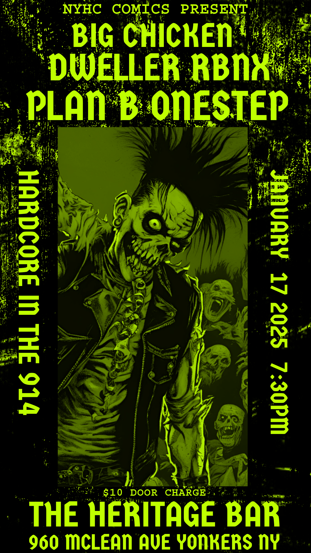 NYHC COMICS Presents: “Hardcore In The 914“ Friday, January 17th, 2025 $10.00 @ Door ALL AGES EVENT! Jump-Off Starts At 7:30PM Special Guests: @The_RBNX @Dweller.NY @BigChickenBand @PlanBee_OneStep Location: The Heritage Bar 960 McClean Avenue Yonkers, NY 10704 Mosh, Into Hardcore & Punk Rock This New Year! Come On Out For A Great Night With Some […]